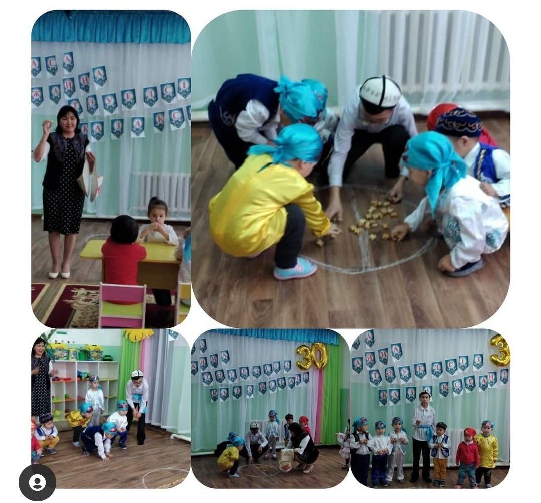 Кеңжыра орта мектебі мектепке дейінгі шағын орталығымен коммуналдық мемлекеттік мекемесінің Кіші топ тәрбиеленушілерінің Қазақстан Республикасының 30 жылдығына орай "30жылдыққа 30ойын тақырыбындағы "Ұлттық ойын-асық ату"ойыны.