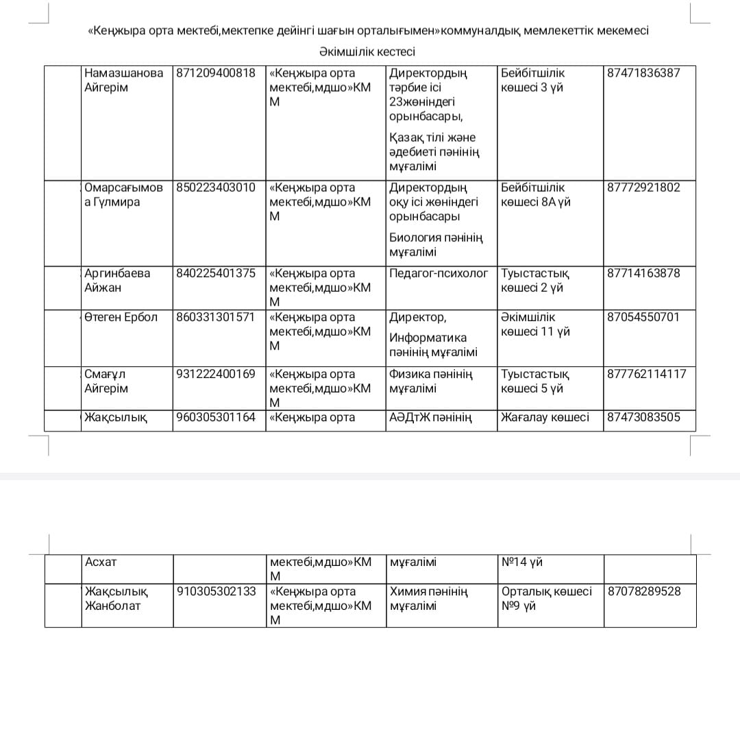 Әкімшілік » «Кеңжыра орта мектебі, мектепке дейінгі шағын орталығымен» коммуналдық мемлекеттік мекемесі