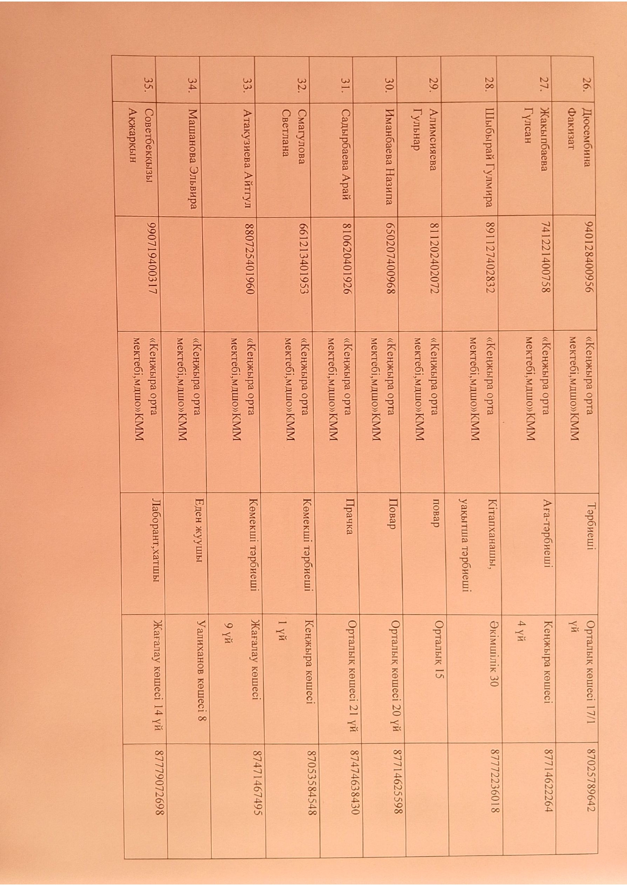 2025 - 2026 оқу жылының мұғалімдер тізімі » «Кеңжыра орта мектебі, мектепке дейінгі шағын орталығымен» коммуналдық мемлекеттік мекемесі