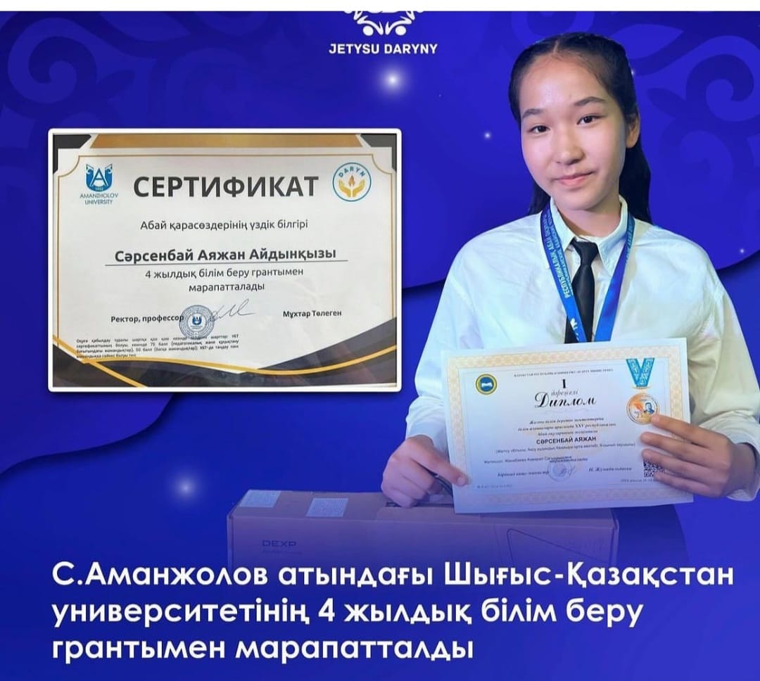 2024 жылғы 10-13 маусым аралығында Абай облысы Семей қаласында өткізілген "Абайдың оқулары" байқауында "Абайдың қара сөздері" номинациясы бойынша жүлделі I-орынды мектебіміздің оқушысы Сарсенбай Аяжан иеленді. Және С.Аманжолов атындағы Шығыс Қазақстан университетінің төрт жылдық білім беру гранты табысталды.